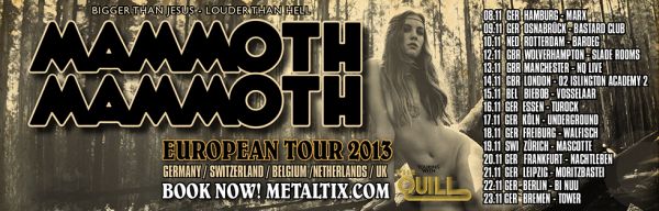 Jetzt ist die Saat dieser dunklen Prophezeiung aufgegangen und trägt ihre blutigen Früchte. Die vier einzigen Nachkommen dieser Männer – Mammoth Mammoth sind Australien entflohen und machen gemeinsame Sache mit den schwedischen Metal Barbaren von The Quill um donnernde Riffs über Europa regnen zu lassen und eine Todeswelle aus brutalem Mörder-Fuzz loszulassen um auch noch die letzten Einhörner aussterben zu lassen.